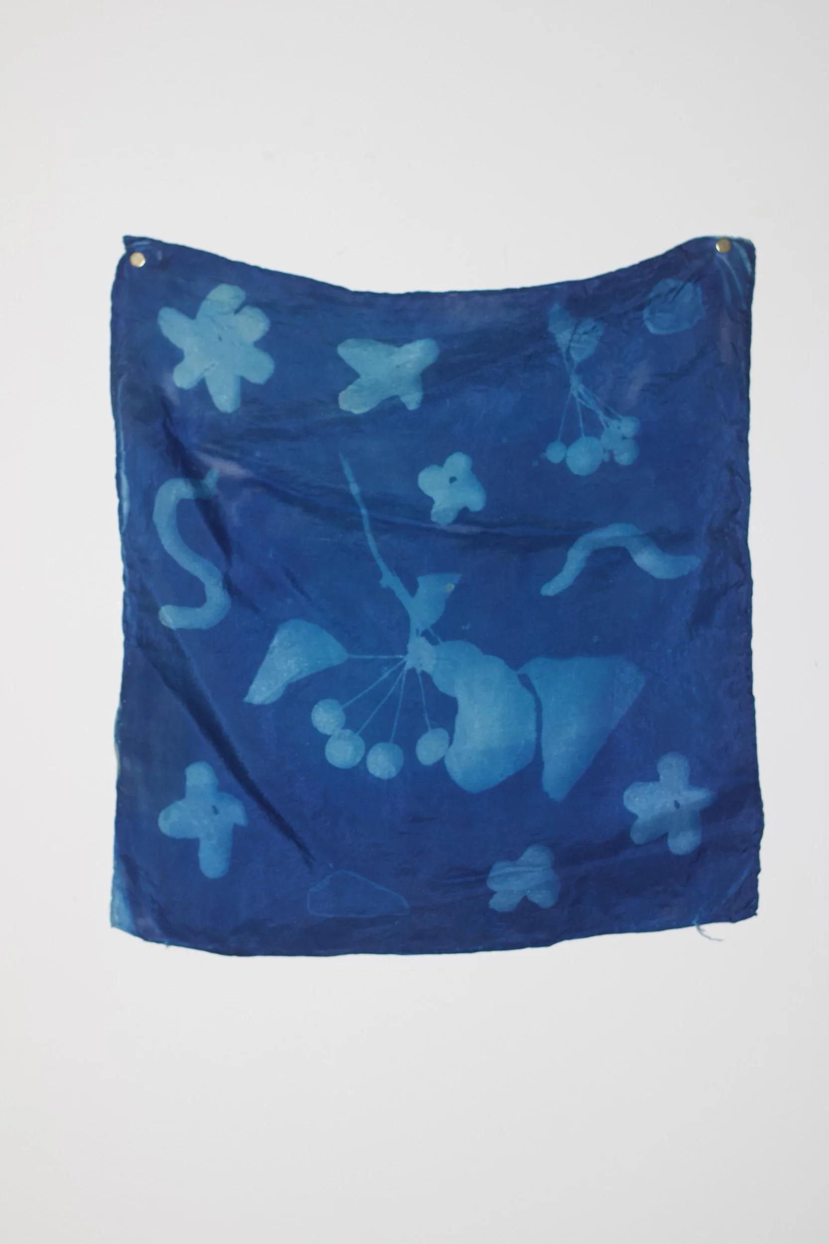 Cherries Cyanotype Small Silk Hankie