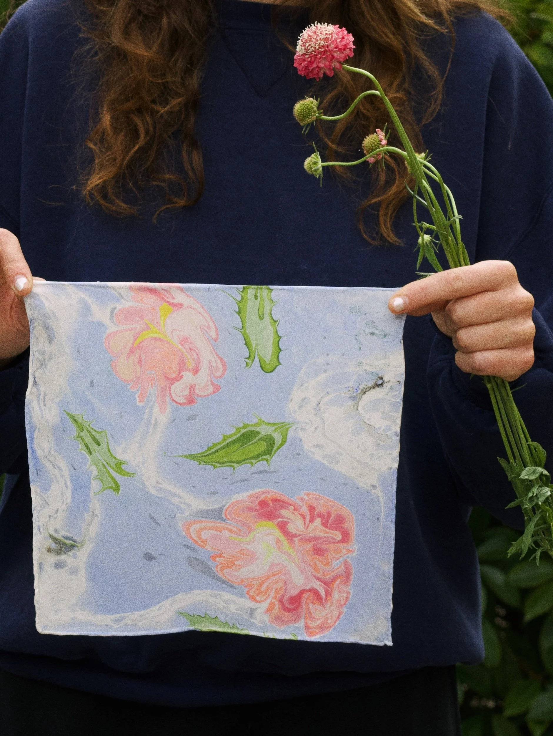 Hand marbled silk hankie